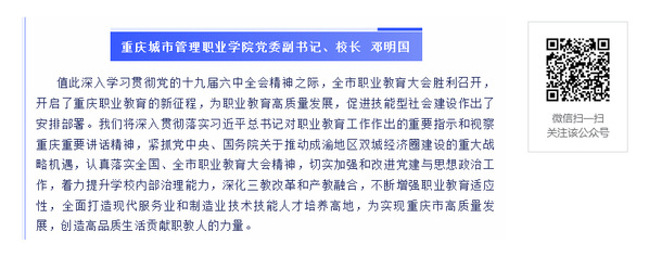 作者:党委宣传网工部审核发布:重庆城市管理职业学院发布者:党委宣传网工部发布时间:2021-12-15浏览次数:285