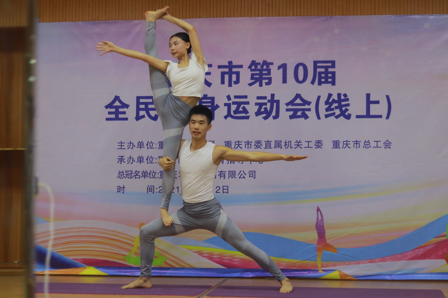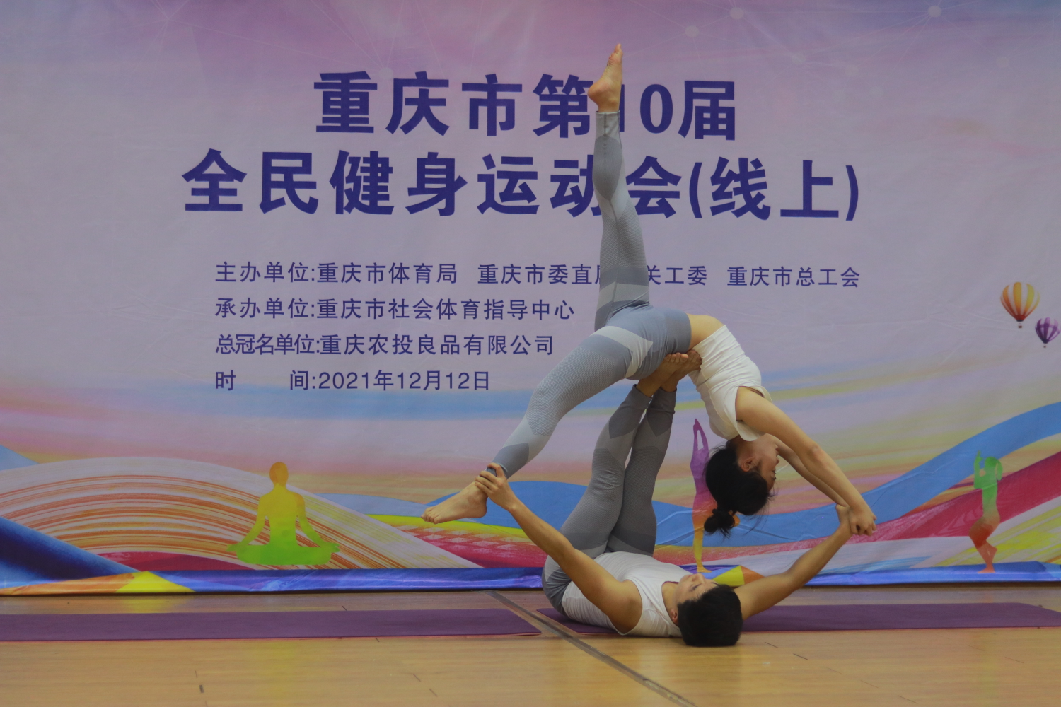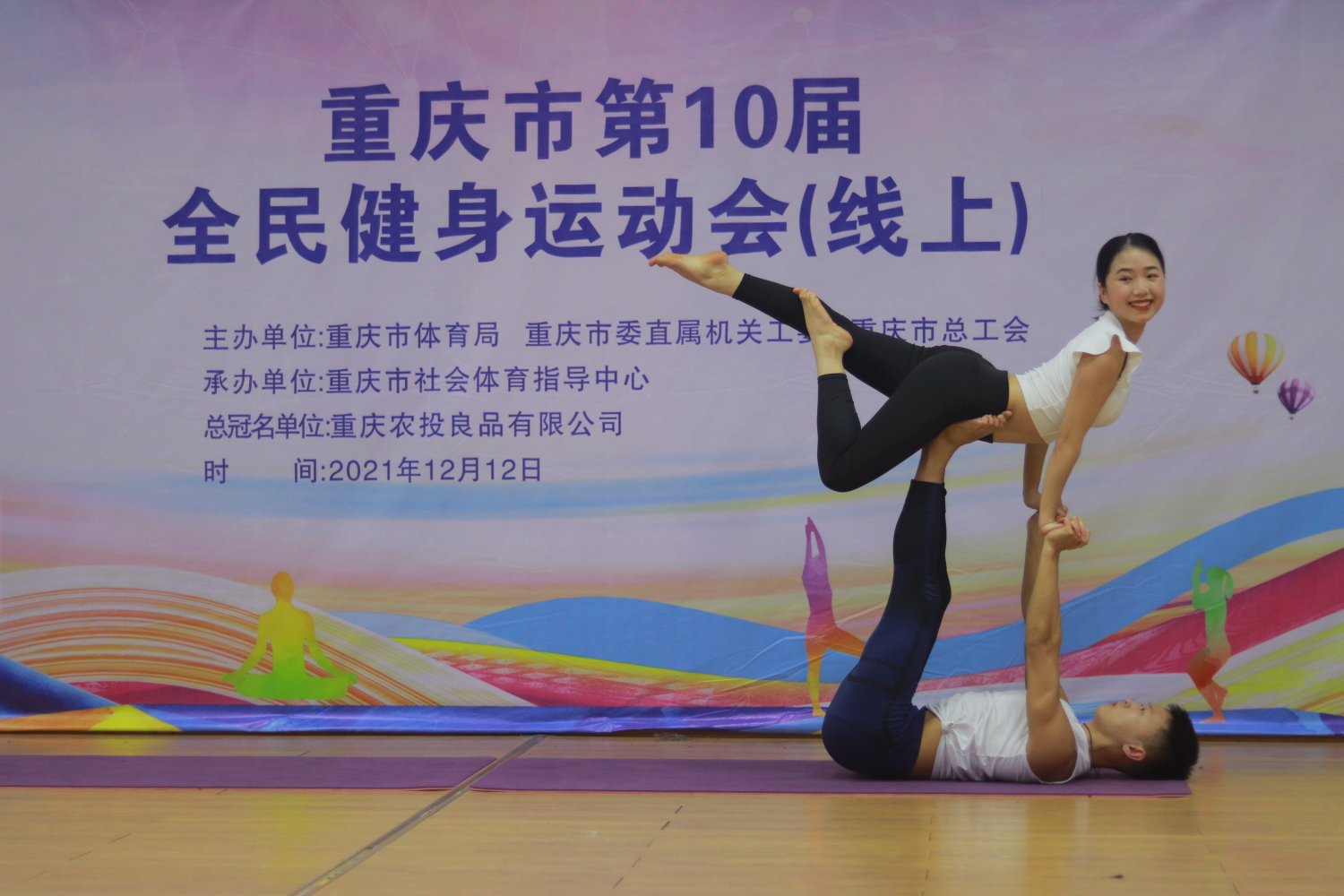 12月11一12日,由重庆市体育局、重庆市直机关工委、重庆市总工会主办的重庆市第十届全民健身运动会(线上)瑜伽项目比赛顺利举行,比赛分设男子单人、女子单人、混合双人、女子双人比赛等项目,来自各区县、机关、企事业单位和行业协会共计40余支队伍参加了比赛。