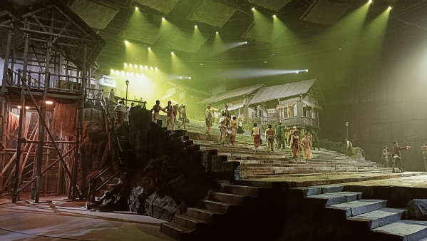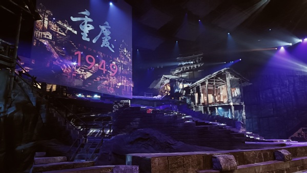 《重庆·1949》这部以红岩文化为创作背景的大型红色舞台剧,讲述了“众多被关押在渣滓洞、白公馆的中国共产党人,经受住种种酷刑折磨,百折不挠、宁死不屈”的故事,再现了中国人民解放军解放重庆,并与重庆人民一起保卫城市的宏大场景,从更广阔的时空维度全新演绎了红岩经典。跟随剧情的推进,大家仿佛坐上时光机,回到了1949年,波涛汹涌的磁器口码头、幽长的梯坎、扬帆的巨轮出现在眼前……。