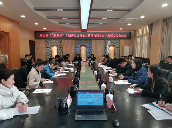 12月22日,重庆市“五社联动”专题研讨会暨公共管理与服务合作发展专委会分组会在我校第三会议室举行。重庆市民政局基层政权与社区建设处副处长王伟林、慈善事业促进和社会工作处李云波、大渡口区物业管理协会会长杨崇渝、第二福利院副院长邱伶俐及公共管理与服务合作发展专委会成员代表、民政与社会治理学院院长周良才、党总支书记陶军屹、副院长李飞虎及专业教师代表20余人参加会议。会议由副院长李飞虎主持。