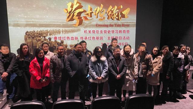 为进一步推动党史学习教育向纵深发展,增强党员同志爱党爱国热情,赓续红色血脉,传承红色基因,1月6日,机关党总支组织党员集体观看了红色电影《跨过鸭绿江》,一起重温波澜壮阔的革命历史,深刻感悟伟大的抗美援朝精神。