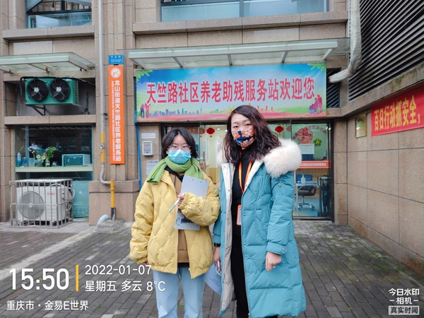 2022年1月3-7日,博士科创团队成员张墨、黄茜、李秋竹受重庆市渝北区民政局委托,携学生志愿者走访了重庆市渝北区龙溪、龙山、双凤桥等镇街80余家养老服务中心(站),分别对镇街辖区内的社区养老服务中心(站)运营管理进行了考核评估,并调查了800余位老人对辖区内中心(站)的满意程度。