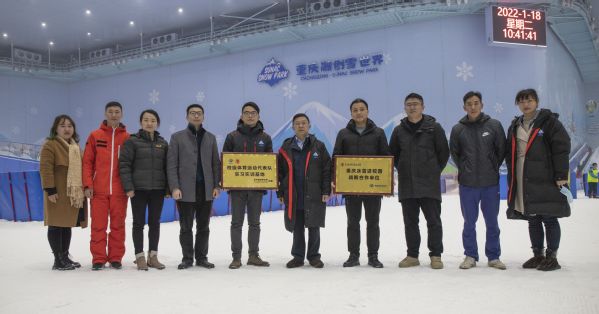 为迎接北京2022年冬奥会,推广冰雪运动进校园,同时也为拓展我校学生实习、实训、就业提供更为广阔的空间,1月18日,我校与重庆融创雪世界校企合作签约暨授牌仪式在沙坪坝区融创雪世界举行。融创雪世界经理王梦思、校长孙丽,我校智慧康养学院院长田奇恒、副院长雷靳灿及社会体育专业、公共体育教研室相关教师参加会议。