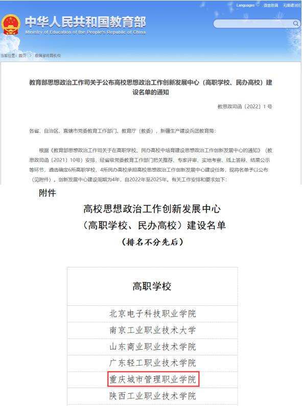今年1月12日学校参加了教育部组织的线上答辩会,任波书记就学校申报优势和中心建设规划思路、举措方案、条件保障等向答辩专家组进行了详细陈述,并回答了专家的现场提问,受到了专家评委的高度评价。1月26日,学校成功入围教育部高校思想政治工作创新发展中心公示名单。