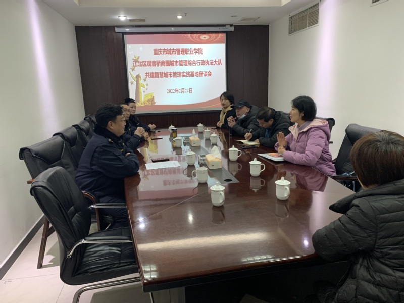 2月22日,民政与社会治理学院副院长李飞虎、公共事务管理专业教学团队前往江北区观音桥商圈综合执法大队,洽谈公共事务管理专业校企合作基地建设事宜,并看望在商圈执法大队就业的历届毕业、实习学生。综合执法大队大队长田汉、大队党支部书记卢锋等与教师们进行了热情友好的交流。