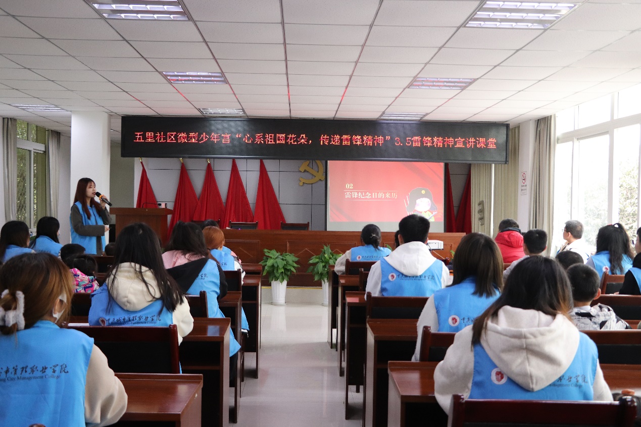 为深入贯彻落实习近平总书记关于志愿服务工作的重要指示精神,在第60个学雷锋纪念日之际,3月5日,大数据与信息产业学院在曾家镇五里社区开展“心系祖国花朵,传递雷锋精神”主题劳动实践教育与志愿服务活动。学院团委学生会、青年志愿者共计20余人参加。