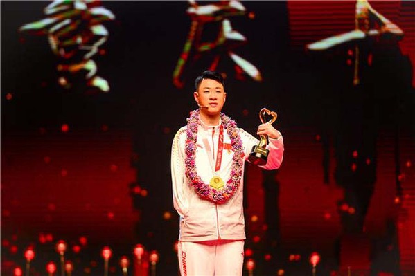 从福利院百岁老人手中领取“感动人物”奖杯后,周灿说:“能在老人的生命最后一程点燃一束光、绘就一抹色彩,我的付出是值得的。”