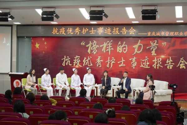 报告会邀请到5名抗疫优秀护士做报告,其中包括南丁格尔奖章获得者、全国抗击新冠肺炎疫情先进个人、全国五一巾帼标兵、重庆市抗击新冠肺炎疫情先进个人,他们都有一个共同的经历——受中国人民解放军或重庆市派遣,2020年春季驰援武汉,进行了艰苦卓越的抗疫斗争。
