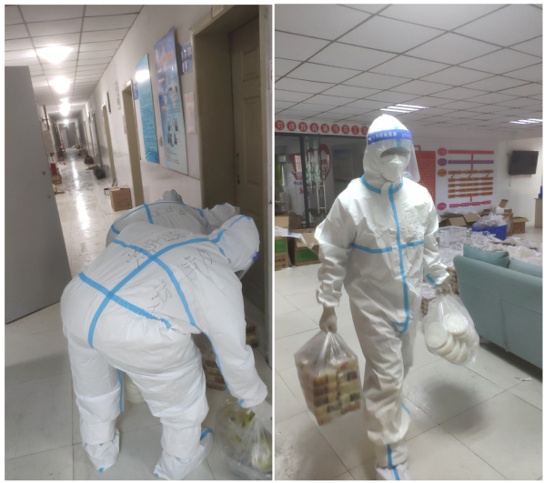 在宿舍中,他们由科研能手变成了抗疫战士,每天给同学们送餐是他们身体锻炼的方式,四五个老师要给一栋楼不同楼层300余个宿舍的同学准时把餐送到寝室门口,等同学们用完餐还等逐个把餐盒和垃圾进行归类收集。忙完了才能自己吃上一口饭,往往午餐都是下午4点多钟。