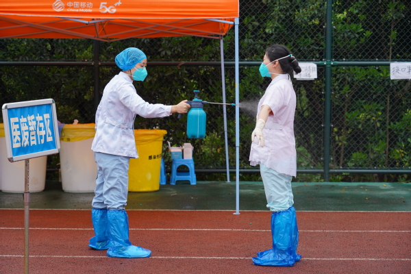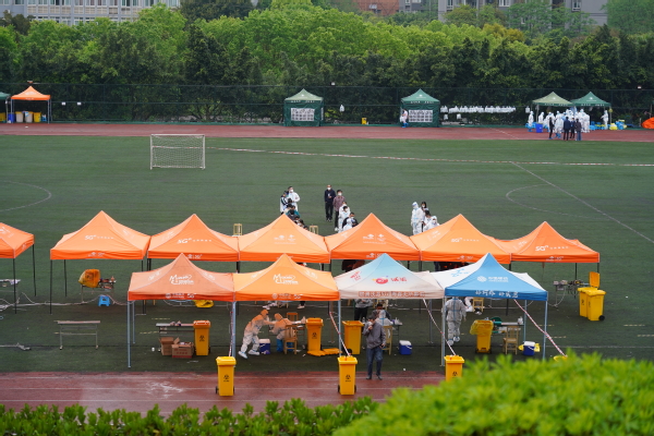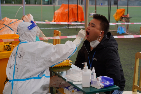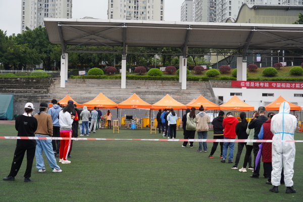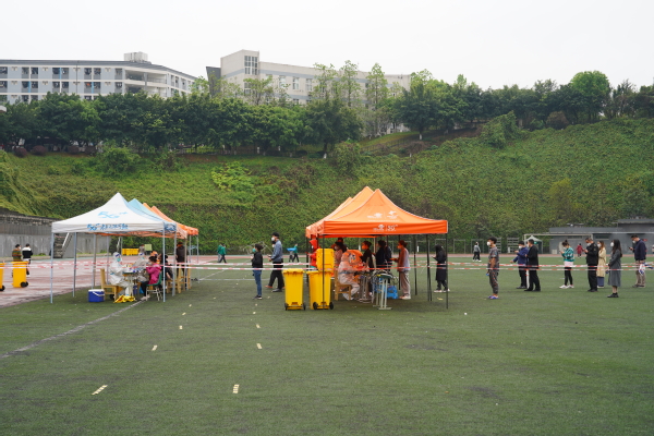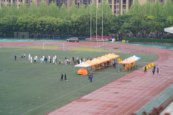 3月21日,我校在田径运动场、各公寓楼栋大厅外开展第七轮核酸检测。校区内样本检测结果连续四轮阴性。