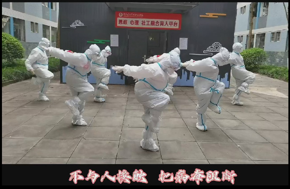 “老师们好可爱!”“爱了爱了!”3月24日,一群“大白”们在宿舍楼前憨态可掬跳战疫舞蹈的小视频在师生中传开,掀起了师生们阵阵好评,也掀起了师生们室内健身的热潮。其中,来自民政与社会治理学院的专任教师、民政专业党支部书记刘慧玲,就是表演者之一。