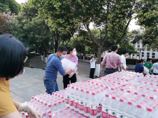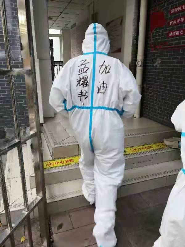 特别值得一提的是,12日晚上,将防疫物资从学校北门搬运到F幢4楼、致远楼C幢4楼,由于人手少,他们工作到凌晨1:30才结束。17号被分配到E幢为近800名1至6楼的男同学送餐,在30度高温下一直穿着防护服,4个小时下来,已全身湿透。因时间较久,面罩上起雾,给送餐工作增加了难度,正如张鑫荣所说:面罩雾蒙蒙的,看不清楚东西,最后分餐的时候,几乎是靠着肌肉记忆在做。”送餐结束,经过标准流程的脱防护服和消杀,4人万分疲惫地回到机房后,孟耀邦直冲沐浴房,出来后大家才知道:他在出差前刚做过手术,伤口还没有完全愈合,为防止感染,沐浴后立刻给伤口重新消毒上药。王倩是他们四人中最瘦弱的,曾经拧瓶盖都要男同事帮忙,而在做志愿者之后,分分钟就能表演“林黛玉倒拔垂杨柳”:几十斤的饭菜,拎上楼是常规操作;带着橡胶手套,一下就能撕开厚重的包装。