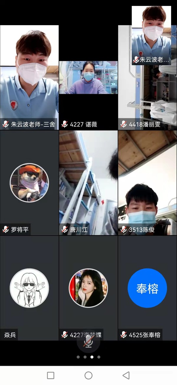 做好老师要有仁爱之心,爱是教育的灵魂,保护生命健康的同时更要抚慰学生心灵。学生在宿舍“足不出户”,或多或少也有一些压力,除了平时在微信群上互动帮助排解,朱云波老师还与同事们一道联合致远园四舍的师生,举办了一些线上体育锻炼活动,边运动、边聊天,既增强了体魄,又缓解了压力,受到同学们的一致好评。