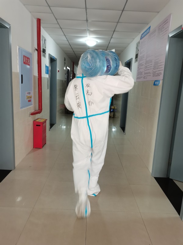 一日三餐、饮用水、药品、生活用品及其他所需的物品的搬运配送工作,密接、次密接学生的转运组织工作,核酸检测组织工作,这些日常工作每天不断循环。晚上回宿舍基本处于瘫倒状态,但朱老师从不喊累叫苦,稍微休息一下,又起来查看学生QQ群,耐心解答学生的问题,及时做好学生心理疏导,往往睡下时已是凌晨1-2点了,由于头上那根弦崩得紧紧的,往往睡不到2小时,他又醒来了。