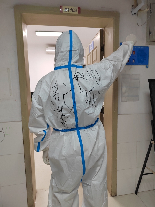 自疫情暴发以来,高蕾一直坚守在被划为疫情中风险地区的学生公寓春华园二舍(E栋),作为整个学校疫情最严重的区域,高蕾参加的工作主要包括:宿舍管理、摸排统计、防控宣传、心理辅导、送餐“大白”、楼道巡逻和门岗值班等。他是防控战线上无数“螺丝钉”中的一颗,哪里需要哪里就会出现他的身影;他也是学生心中的“定心丸”,被学生们亲切地称呼为“蕾哥”。