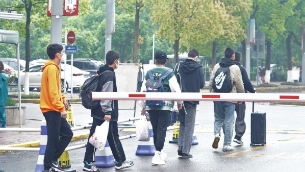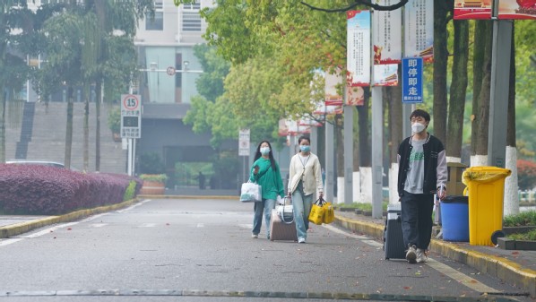 3月30日早上8点左右,我校学生陆续离开公寓楼栋,前往田径运动场、滑板公园、商业街等地进行有序的自由活动。