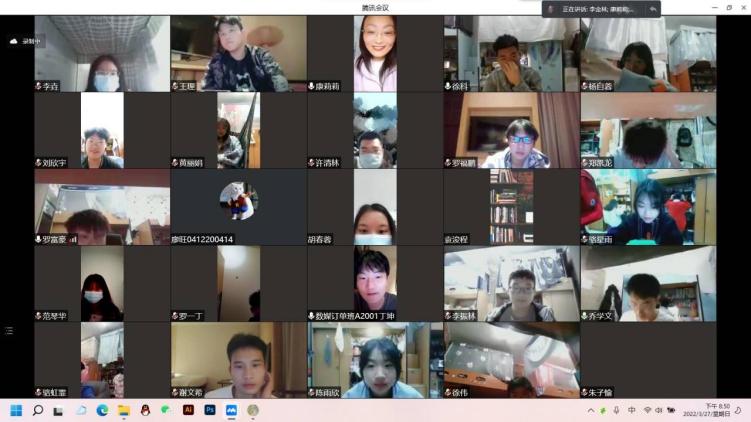 应守尽守,不漏一个阵地。她白天坚守战“疫”一线,送餐、组织核酸、分发生活必需品、收垃圾、查寝,晚上工作不掉线,每天利用班级群,一遍遍向学生传达学校疫情防控要求,做好人文关怀,提醒学生不信谣、不传谣、不造谣。在这期间,多次召开腾讯会议班会,向448