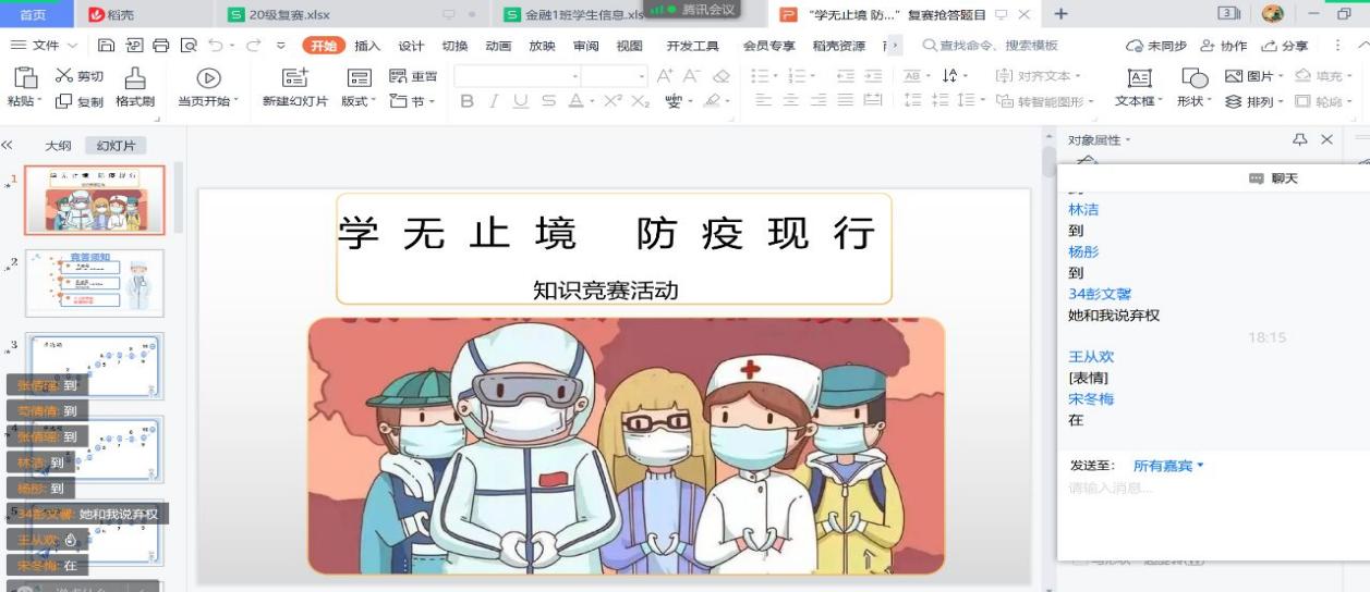 本次活动吸引了我院200余名学生通过雨课堂参与答题。经过复赛, 黄乐乐、黎雪等6余名同学在最终的PPT演讲决赛中取得佳绩。此次活动的开展,有效提升了我院学生对防疫知识的了解,不仅有利于学校防疫工作的开展,也使同学们坚定了抗击疫情必胜的信心,丰富了学生在抗击疫情期间的学习生活。