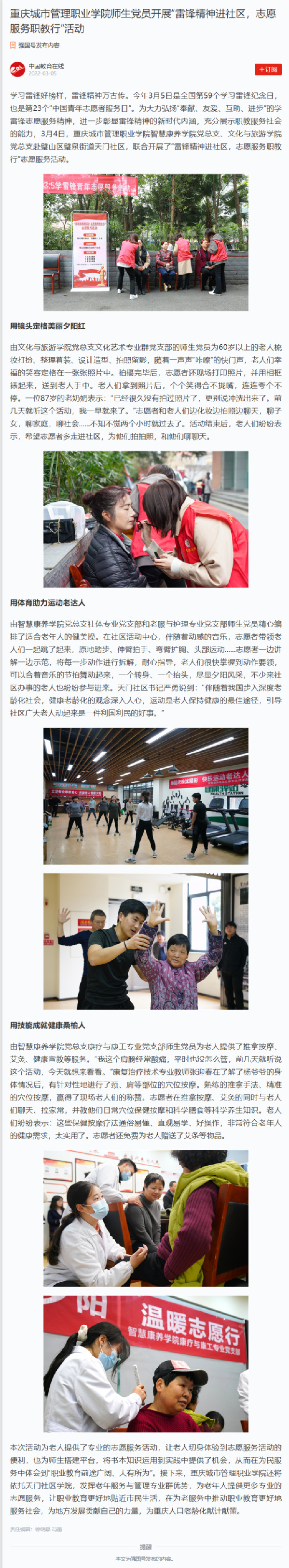 作者:智慧康养学院、文化与旅游学院审核发布:重庆城市管理职业学院发布者:党委宣传网工部发布时间:2022-03-05浏览次数:122