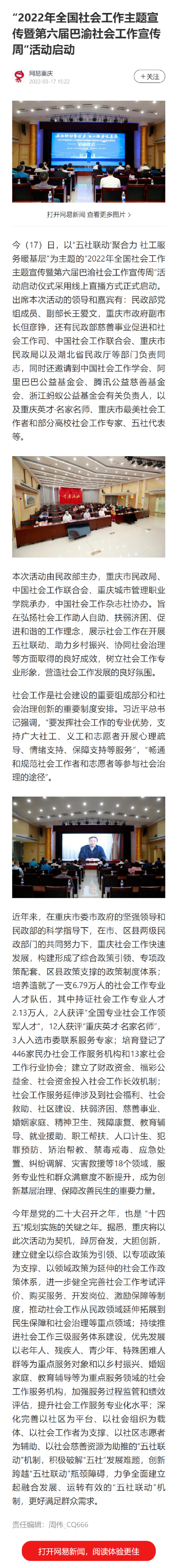 作者:民政与社会治理学院审核发布:重庆城市管理职业学院发布者:党委宣传网工部发布时间:2022-03-17浏览次数:88