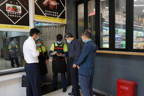 覃正杰副书记一行前往北校门门岗、学生食堂、学生公寓、校内临时快递点等地,对人员进出校门管理、食堂食品卫生安全、学生管理、快递服务、“五一”节期间疫情防控和节后师生返校安排等重点环节进行督导检查,听取学校有关情况汇报。