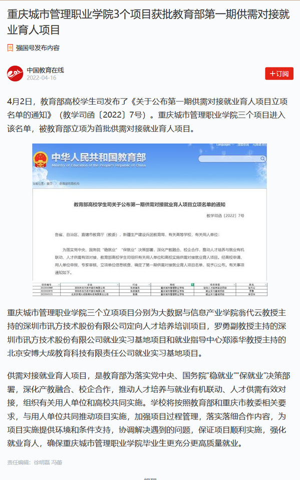 作者:产教融合中心审核发布:重庆城市管理职业学院发布者:党委宣传网工部发布时间:2022-04-16浏览次数:98