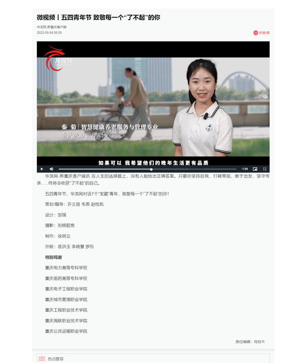 作者:智慧康养学院、党委宣传网工部审核发布:重庆城市管理职业学院发布者:党委宣传网工部发布时间:2022-05-05浏览次数:169