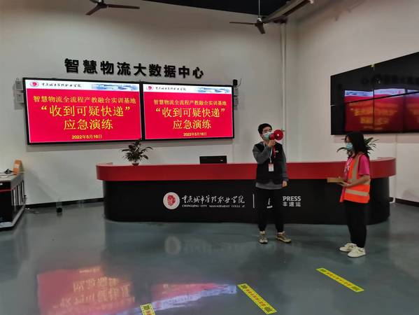 5月16日,智慧物流全流程生产性产教融合实训基地以“收到可疑快件”为主题开展了防疫应急演练。