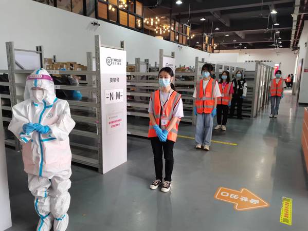演练过程严格按照相关疫情防控要求进行,发现可疑快件,第一时间报告基地负责人。基地负责人使用扩音器,让基地所有人员原地制动,所有快件原地封存,基地立即封闭。基地负责人迅速向学校疫情防控部门进行详细报告。并进行可疑快件的溯源工作。