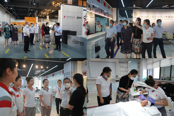 5月23日,重庆市人力资源和社会保障局党组成员、副局长苏静,职业能力建设处处长兰云鹏,职业技能鉴定指导中心主任蹇晓林、副主任王华源等一行到我校调研第46届世界技能大赛美容项目备赛情况。学校党委书记任波,学校党委副书记、院长邓明国,学校党委副书记张新,学校副校长罗小秋陪同调研,并与苏静副局长一行进行了座谈交流。