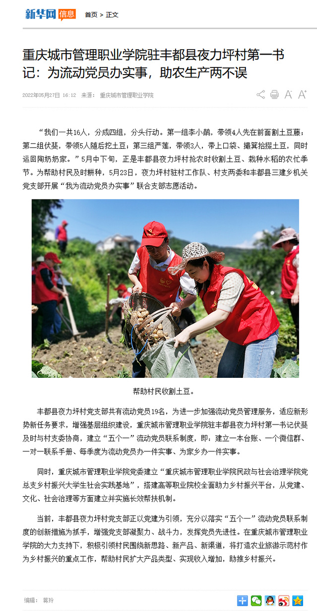 作者:党委组织部、党委宣传部、民政与社会治理学院审核发布:重庆城市管理职业学院发布者:党委宣传网工部发布时间:2022-05-27浏览次数:241