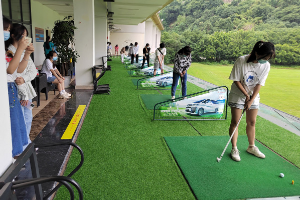 在保利文旅的高尔夫球会练习场,企业负责人安排了专门的高尔夫球教练现场教授大家高尔夫球的入门打法,师生们饶有兴致的接触到一门新的运动,并实际体验了打球的技法。同学们参观了高尔夫的实打场地,也是主要求职意向岗位的实际工作场地,初步了解了高尔夫球场的一些基本规则和工作职责,人事部门围绕岗位要求、薪资待遇、发展前景等问题做了详细解答,对随行的20多名对高尔夫运动工作岗位有兴趣的同学进行了现场面试。