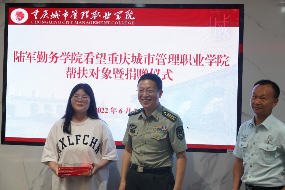 为深入学习贯彻习近平总书记重要决策指示,自觉践行人民军队根本宗旨,推动双拥工作走深走实,6月2日,陆军勤务学院副院长凌大荣、科研学术处参谋蒋滔莅临我校办公楼202会议室看望帮扶对象并举行捐赠仪式。学校党委书记任波,党委委员、副校长周毅,学生处处长程静、学生资助中心科长徐水婵,智能工程学院党政负责人以及相关教师代表参加。捐赠仪式由党委委员、副校长周毅主持。
