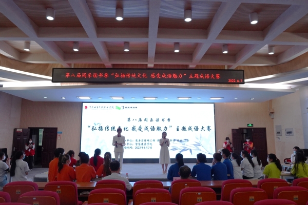为大力弘扬中华优秀传统文化、革命文化和社会主义先进文化,切实推进“全民阅读”活动,培养学生爱读书、读好书、善读书的习惯,6月7日,由智慧康养学院承办的第八届阅乐读书季“弘扬传统文化 感受成语魅力”主题成语大赛在办公楼第一会议室举行。党委学生工作部部长、学生处处长程静,通识教育学院院长黄云峰担任评委。来自各二级学院的七支代表队参加比赛。