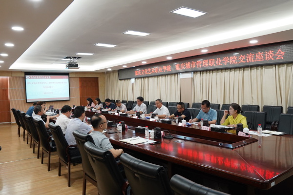 梁跃书记介绍了重庆文化艺术职业学院的办学历史、文化特色和发展成果,表示重庆城市管理职业学院办学成就有目共睹,衷心感谢无私分享、帮带支持,座谈交流的经验和做法蕴含着对高等职业教育的深刻理解、深入思考,体现了创新意识、攻坚意识,希望两校建立更加紧密的联系,深化开展校-校合作,实现互补互强。