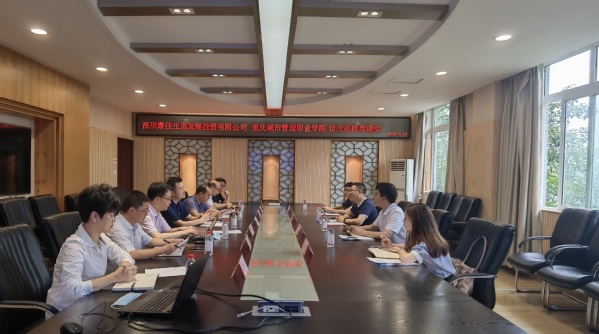 为落实教育部办公厅《关于开展全国高校书记校长访企拓岗促就业专项行动的通知》等文件精神,扎实开展高校书记校长“访企拓岗促就业”专项行动, 6月10日,深圳康佳生态发展投资有限公司驻重庆办事处主任黄红平一行4人,到我校参加“访企拓岗促就业”洽谈会。学校副校长袁国,学生处处长程静、产教融合中心主任江柯、大数据与信息产业学院院长翁代云、文化与旅游学院院长柏文涌等出席会议。会议由副校长袁国主持。