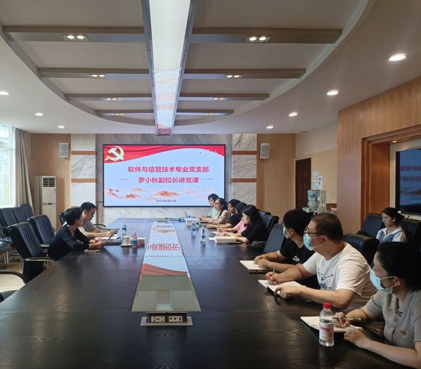 6月21日,学校党委委员、副校长罗小秋在办公楼第三会议室为大数据与信息产业学院宣讲市第六次党代会精神,为软件与信管技术专业党支部师生党员讲授了专题党课。软件与信管技术专业党支部全体师生党员和入党积极分子与会参加学习。会议由大数据与信息产业学院党总支副书记、软件与信管技术专业党支部书记江茂森主持。
