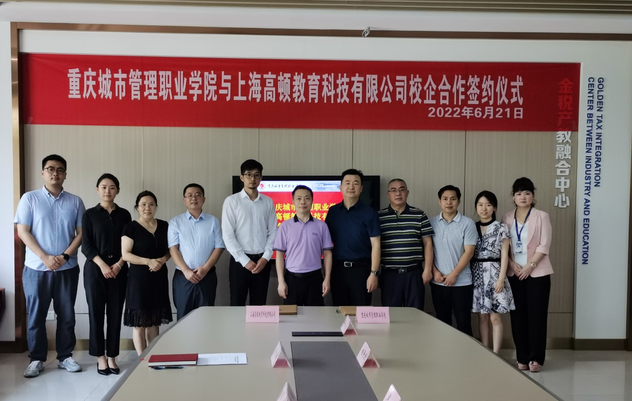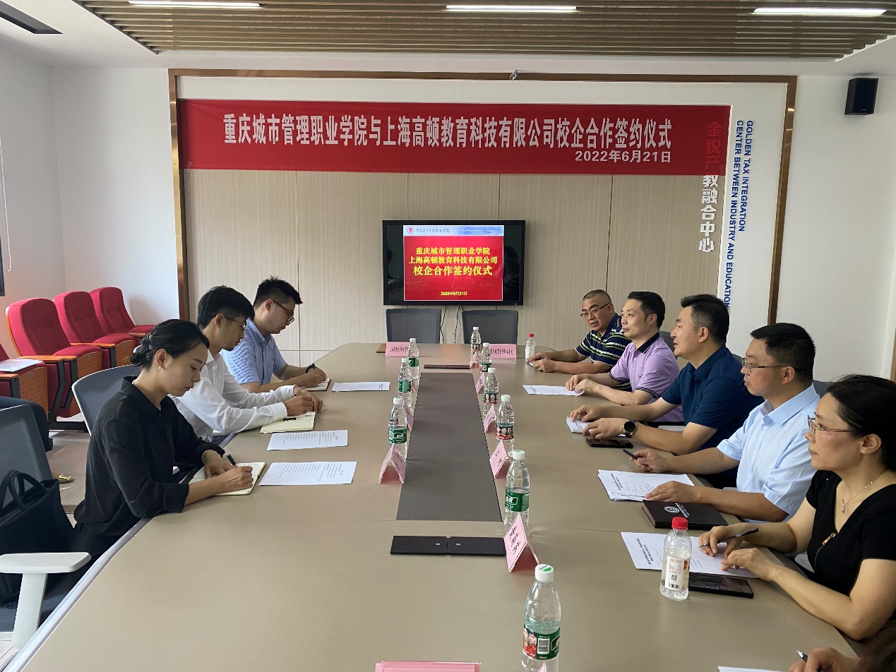 袁国副校长和罗瑞总监分别代表重庆城市管理职业学院与高顿教育集团签署战略合作协议。双方就课程、专业共建、师资培养、双师型教师实践教学基地建设等方面进行了深入探讨。