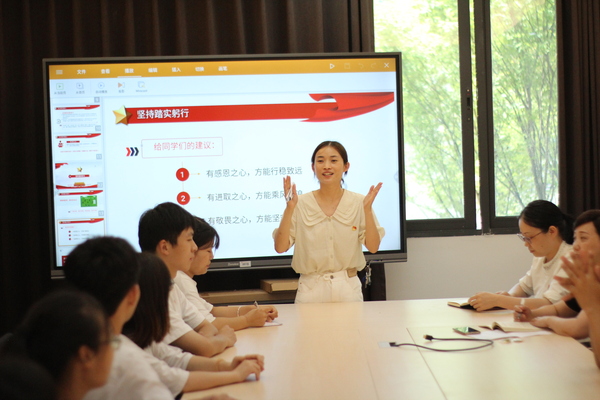马克思主义学院“四联系”老师盛星首先围绕“青春向党 筑梦远航”为毕业生党员上了一堂主题党课。她以习近平总书记对新时代中国青年的深情寄语为开端,从坚定理想信念、矢志艰苦奋斗、坚持踏实躬行三个方面讲述了一代人有一代人的际遇,一代青年有一代青年的使命,青年不懈追求的美好梦想,始终与振兴中华的历史进程紧密相联,号召同学们要常怀感恩之心,方能行稳致远;常怀进取之心,方能乘风破浪;常怀敬畏之心、方能坚守底线。