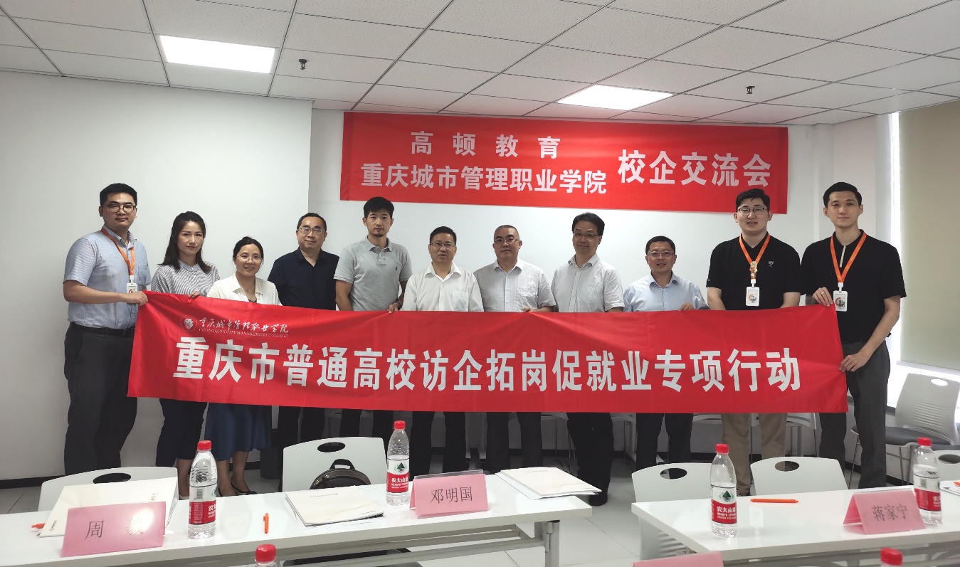 为深入贯彻落实党中央、国务院、市政府“稳就业,保民生”工作决策部署,积极响应教育部办公厅“高校书记校长访企拓岗促就业”专项行动要求,6月24日,学校党委副书记、校长邓明国,副校长周毅,产教融合中心江柯,大数据与信息产业学院院长翁代云,数智财经学院党总支书记蒋家,数智财经学院副院长黄菊英以及数智财经学院校企合作专员王颖等一行到上海高顿教育科技有限公司重庆分公司走访调研。