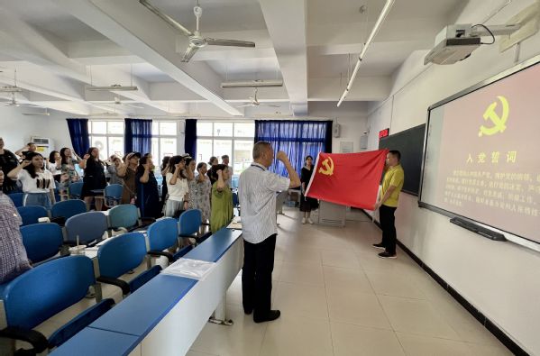 随后,蒋芹忠同志带领全体教师党员,在庄严的党旗下重温入党誓词。