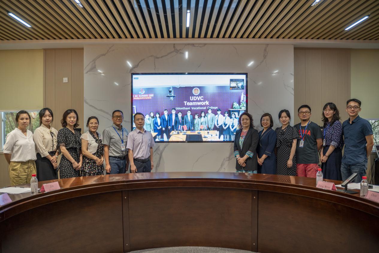7月5日,我校与泰国乌隆他尼职业学院在办公楼202会议室联合举办2022届泰国留学生线上毕业典礼。学校纪委书记杨寿康、泰国乌隆他尼职业学院副校长萨迈·斯里哈布特里先生、学校教务处处长吕红、文化与旅游学院副院长罗纪红、数智财经学院副院长黄菊英、商学院副院长牟艳红、中泰双方教师代表、留学生辅导员以及2022届泰国毕业生参加典礼。典礼由国际合作与交流中心主任孙玉中主持。