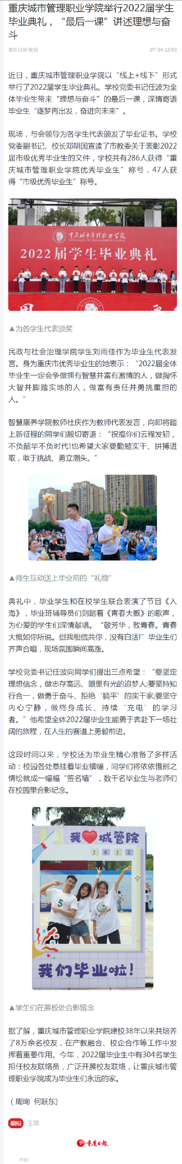 作者:党委宣传网工部审核发布:重庆城市管理职业学院发布者:党委宣传网工部发布时间:2022-07-05浏览次数:176