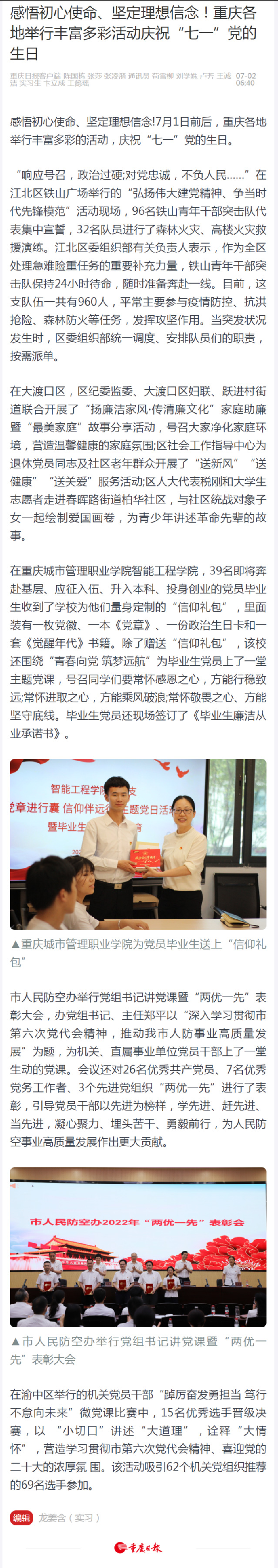 作者:智能工程学院审核发布:重庆城市管理职业学院发布者:党委宣传网工部发布时间:2022-07-02浏览次数:99
