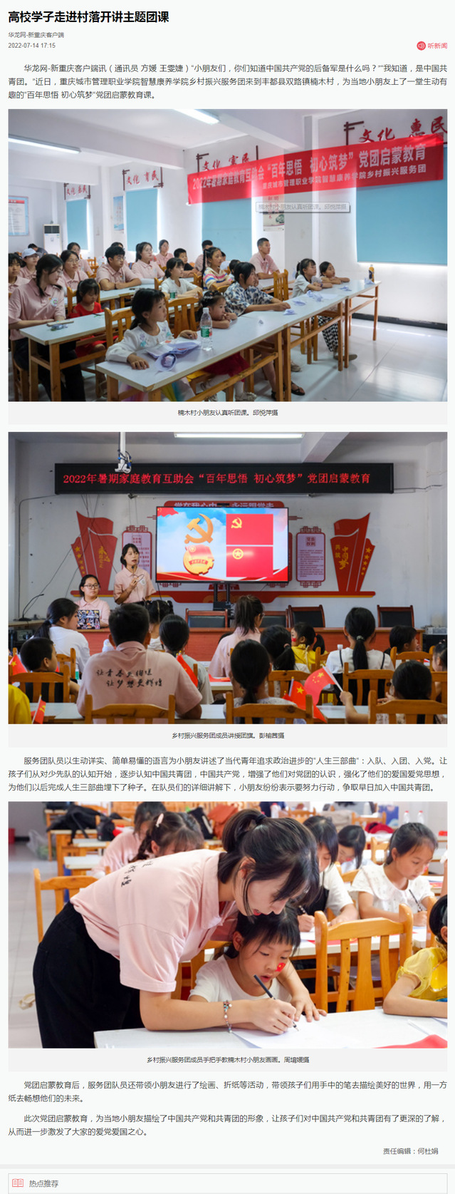 作者:智慧康养学院审核发布:重庆城市管理职业学院发布者:党委宣传网工部发布时间:2022-07-14浏览次数:121