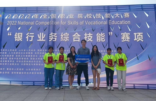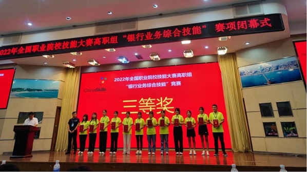 8月15日,由教育部主办,山东省教育厅、青岛市人民政府、山东省商务厅承办,山东外贸职业学院协办的2022年全国职业院校技能大赛银行业务综合技能赛项高职组比赛落下帷幕,来自全国55所专科院校队伍参赛。由我校数智财经学院金融服务与管理专业王惠凌、董倩和马云风老师带队,2020级金融服务与管理专业4名学生(陈美、杨梅、宋冬梅、张建梅)组成的参赛队伍,获得本次赛项高职组三等奖。