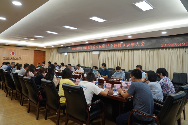 9月9日,庆祝第38个教师节表彰大会在办公楼201会议室召开。学校党委书记任波,党委副书记、校长邓明国等校领导和获市级以上荣誉称号代表、从教三十年教师、2022年“十育人”标兵代表等参加会议。会议由学校副校长莫堃主持。
