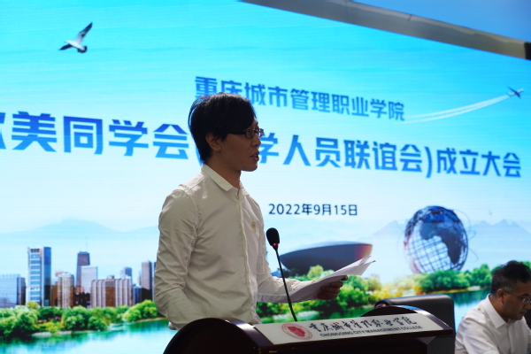 9月15日,重庆城市管理职业学院欧美同学会(留学人员联谊会)成立大会召开。重庆欧美同学会(重庆留学人员联谊会)党组书记、秘书长陈鹏,重庆市教委统战处处长郭冠仁,学校党委书记任波,党委副书记张新出席成立大会。学校各二级党组织书记、统战委员,相关职能部门负责人,各民主党派基层组织、统战团体负责人以及校欧美同学会首届会员参加大会。成立大会由张新主持。