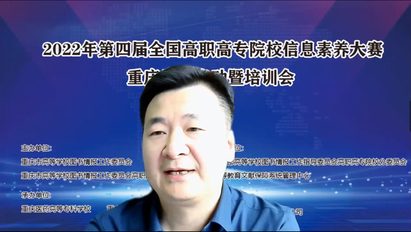 为贯彻教育部《教育信息化2.0行动计划》文件精神,全面落实立德树人根本任务,切实提高大学生创新精神和信息素养能力,9月17日,2022年第四届全国高职高专院校信息素养大赛重庆赛区启动暨培训会线上会议成功举行。会议由重庆市高等学校图书情报工作委员会和重庆市高校图工委高职高专专委会主办,北京方正阿帕比技术有限公司及高等教育文献保障系统(CALIS)管理中心协办。学校副校长袁国教授出席会议并作交流发言,学校图书馆馆长孙雪梅教授主持会议。