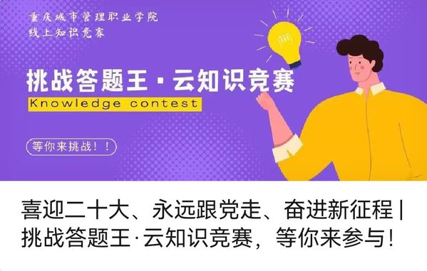 为引领学生深入学习贯彻习近平新时代中国特色社会主义思想,增强永远跟党走、奋进新征程的坚定信心,争做有志气、有才气、有锐气、有骨气的新时代青年,近日,我校在新生开学之际,开展了“喜迎二十大 永远跟党走 奋进新征程”挑战答题王云知识竞赛。